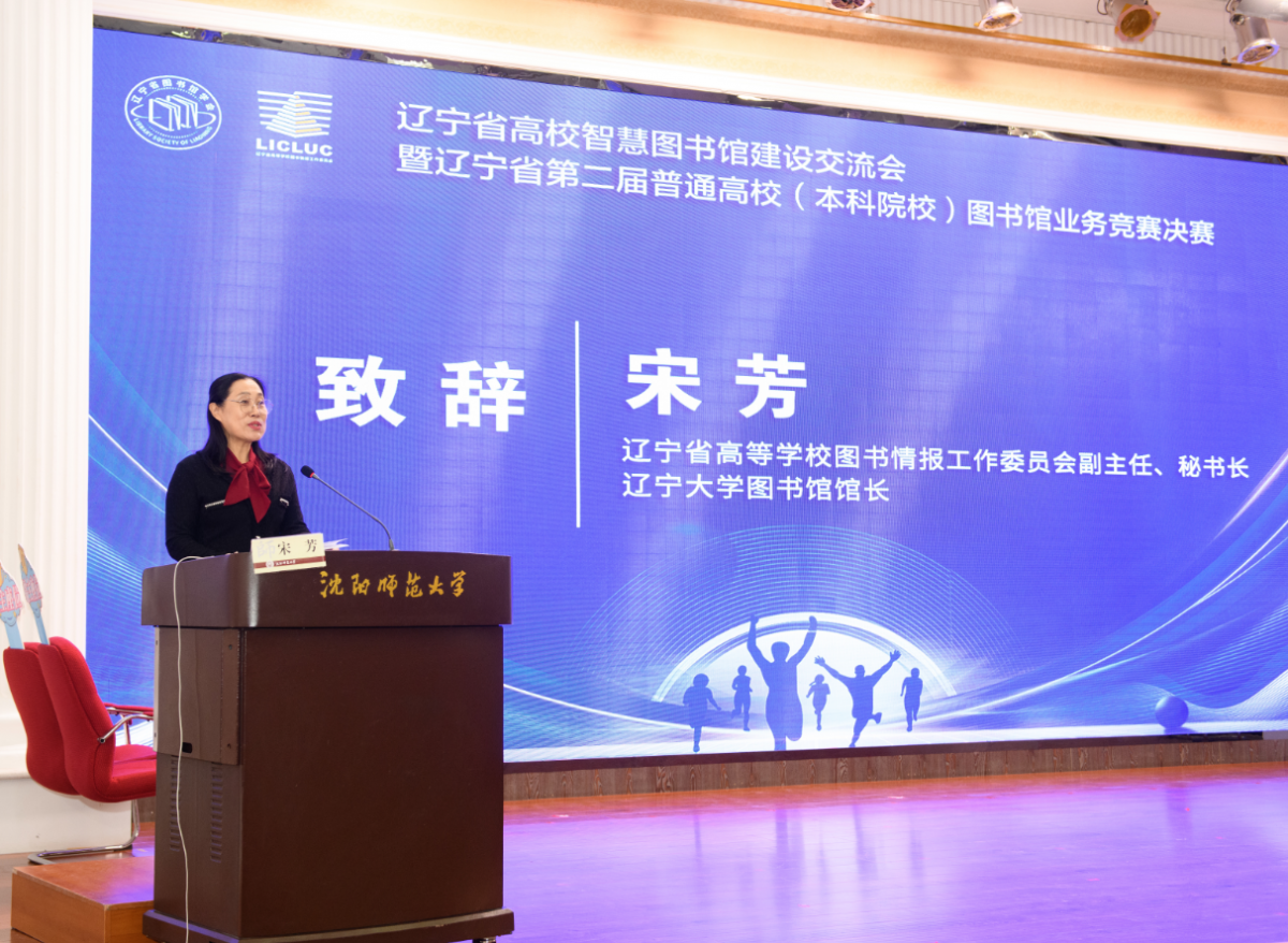 辽宁省高校图工委副主任兼秘书长、辽宁大学图书馆馆长宋芳致辞