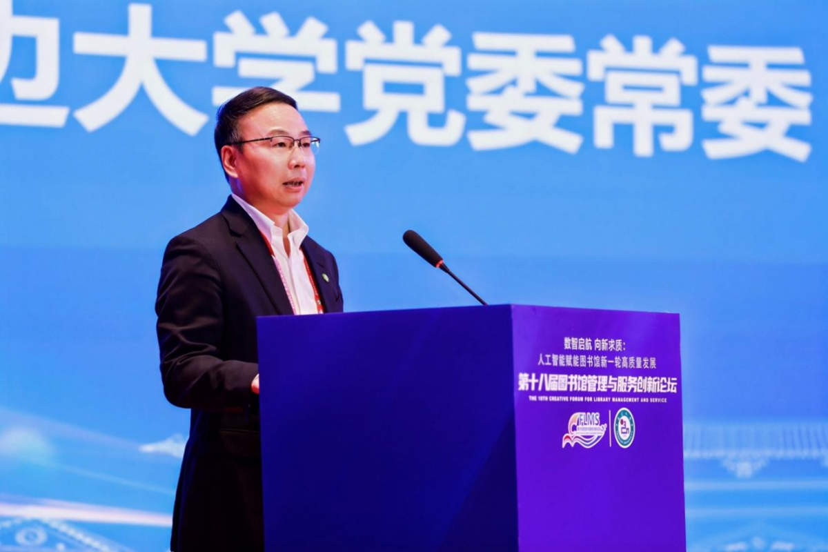 2025年9月25日-27日,第十八届图书馆管理与服务创新论坛在吉林省延边朝鲜族自治州举办。本届论坛由教育部高等学校图书情报工作指导委员会、CALIS管理中心、上海交通大学图书馆以及武汉大学图书馆主办,延边大学图书馆承办,来自全国100所院校及单位的近300名代表参加了本次会议。