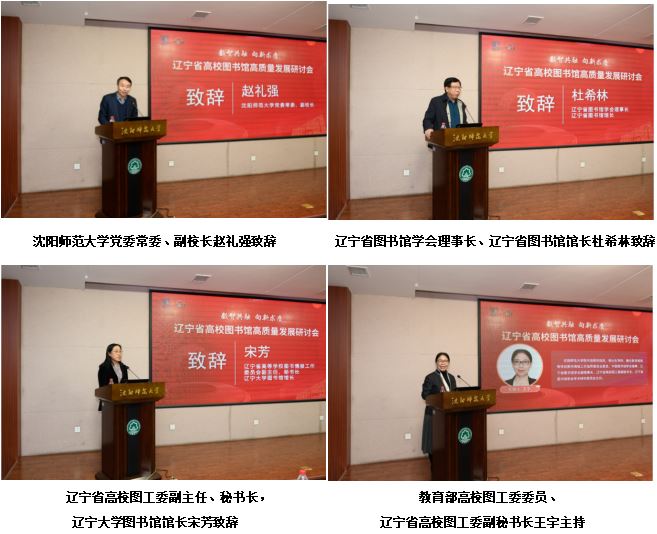 沈阳师范大学党委常委、副校长赵礼强,辽宁省图书馆学会理事长、辽宁省图书馆馆长杜希林,辽宁省高校图工委副主任、秘书长、辽宁大学图书馆馆长宋芳出席开幕式并致辞,表达了对研讨会成功举办的期待以及对全省高校图书馆事业优质高效发展的美好愿景。开幕式由教育部高校图工委委员、辽宁省高校图工委副秘书长王宇主持。